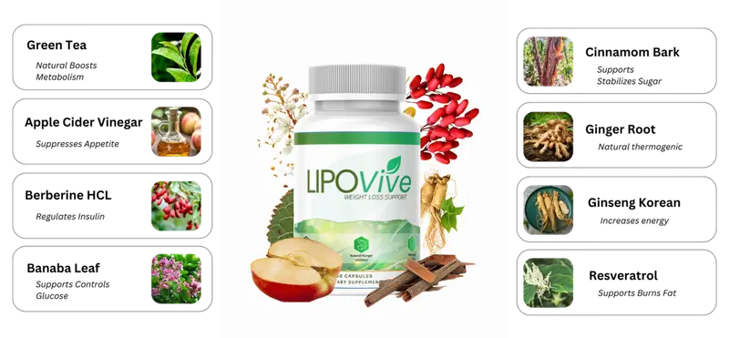 LipoVive is one of the few products in the world that combines a unique blend of exotic nutrients and herbs, carefully selected to mimic the powerful natural effects of Mounjaro — working directly on the GLP-1 and GIP hormones, which are responsible for regulating appetite and fat burning.
